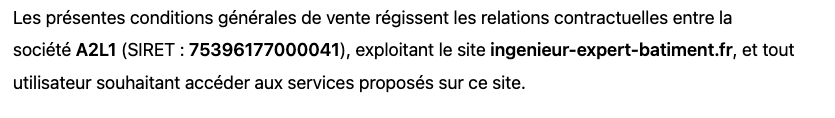 Les présentes CGV définissent les conditions dans lesquelles A2L1 fournit des prestations de services d’expertise en bâtiment sur le territoire national français.
