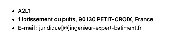 En cas de litige, vous devez au préalable adresser une réclamation écrite à la société A2L1 à l’adresse suivante :